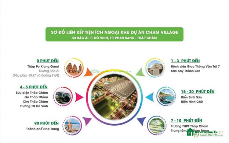 KDC Tháp Chàm Xanh Ninh Thuận nằm ngay trong KDC hiện hữu, tiếp giáp với Chợ, bệnh viện, bưu điện, ga xe lửa Tháp Chàm, các trường từ mầm non đến các trường cao đẳng - đại học, và sân bay bởi lẽ dự án nằm trong trung tâm thành phố Phan Rang - Tháp Chàm,...